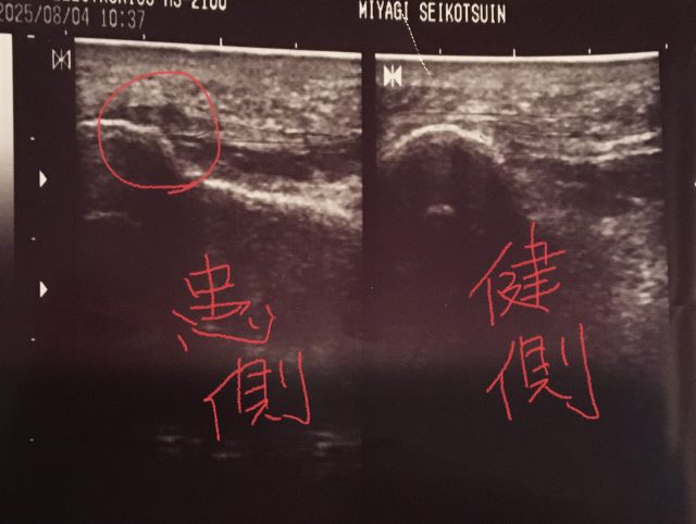 治らず当院を受診されました。エコー検査すると腫脹がみられ