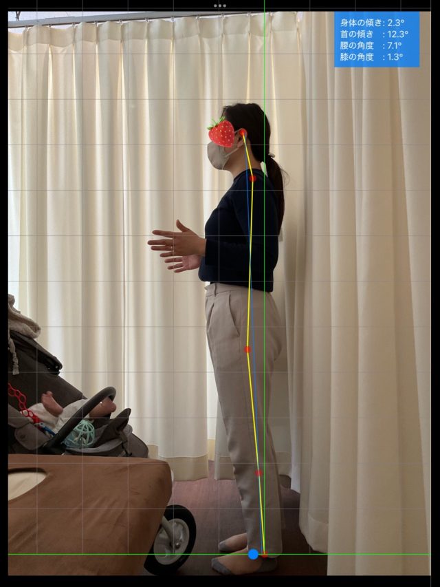 左に重心が偏位し右肩がやや挙上位にあります。